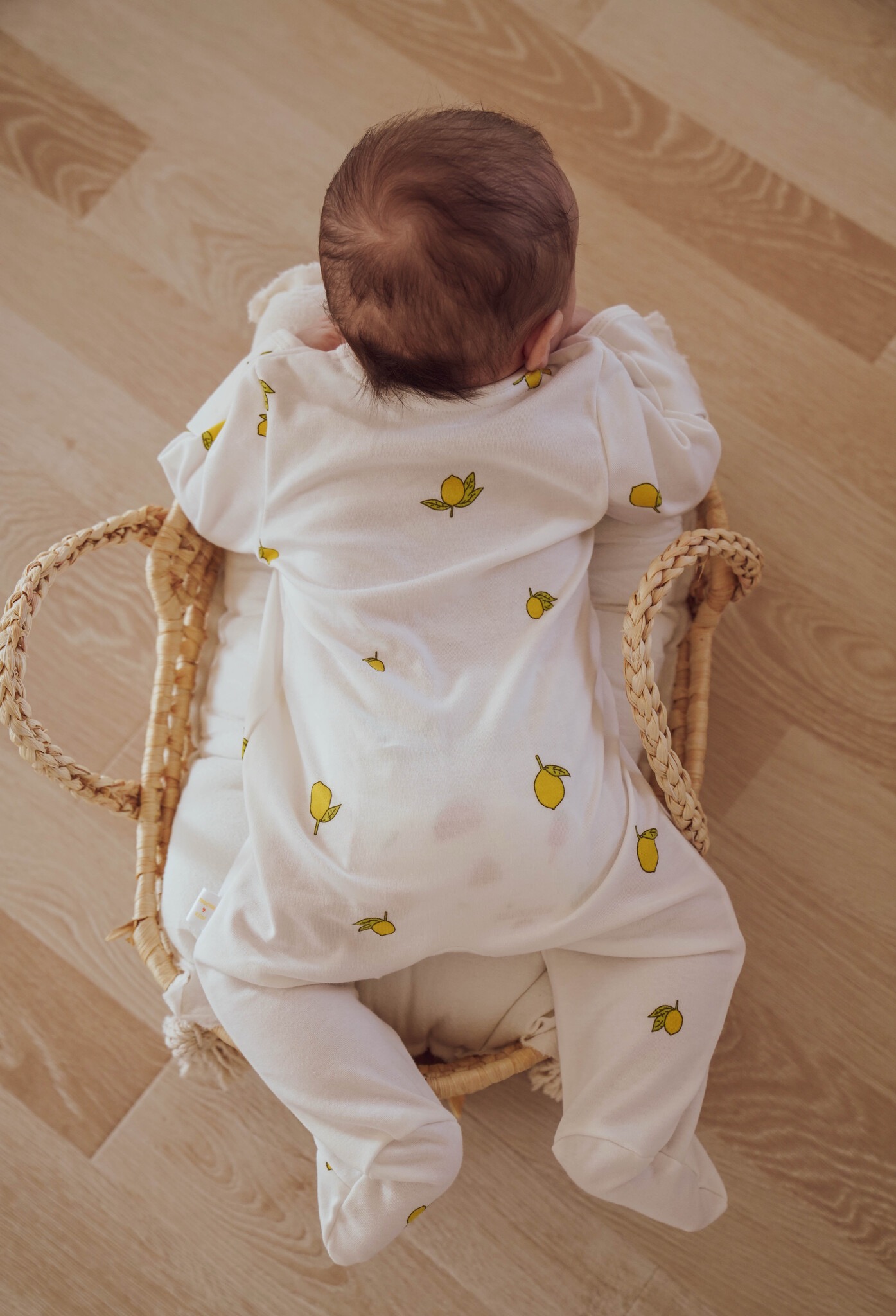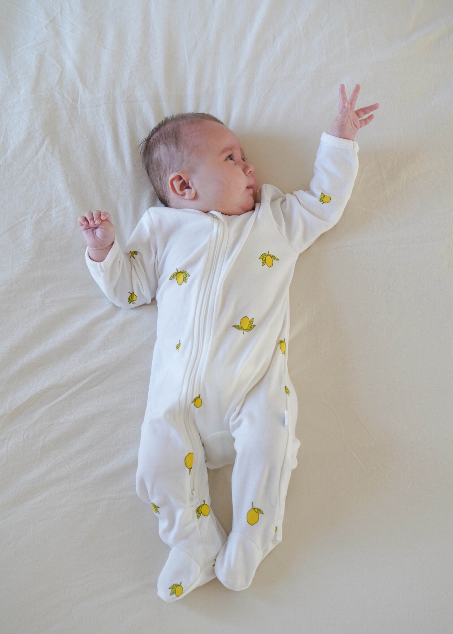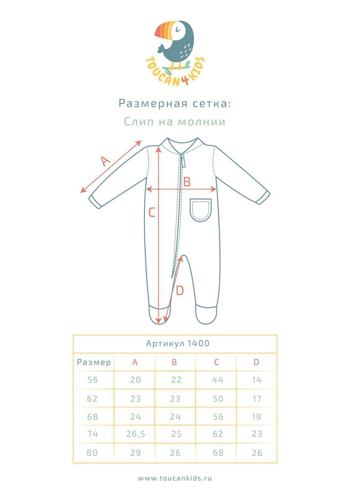 Комфортный слип на молнии из 100% хлопка, имеющего международный сертификат OEKO-TEX (экологичность производства ткани). Модель с двумя бегунками для легкого переодевания малыша.