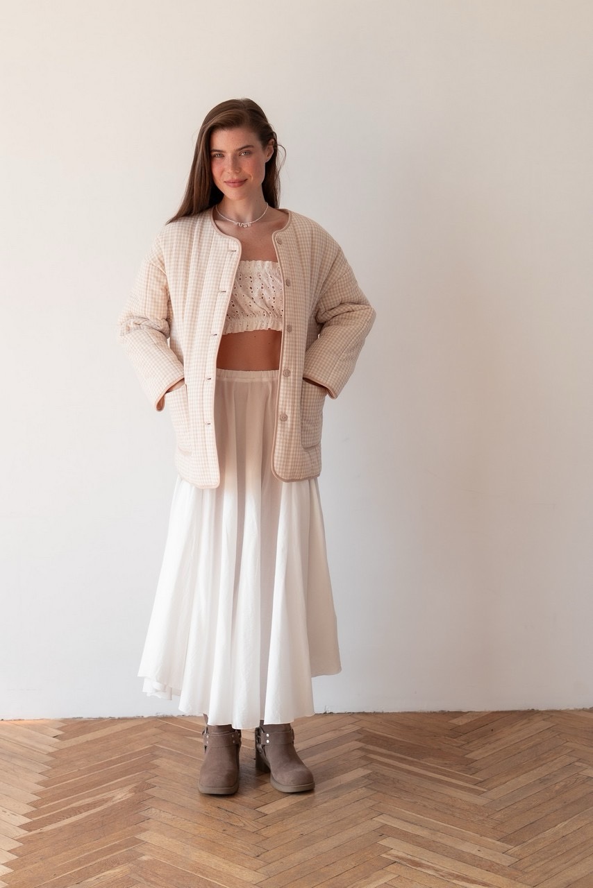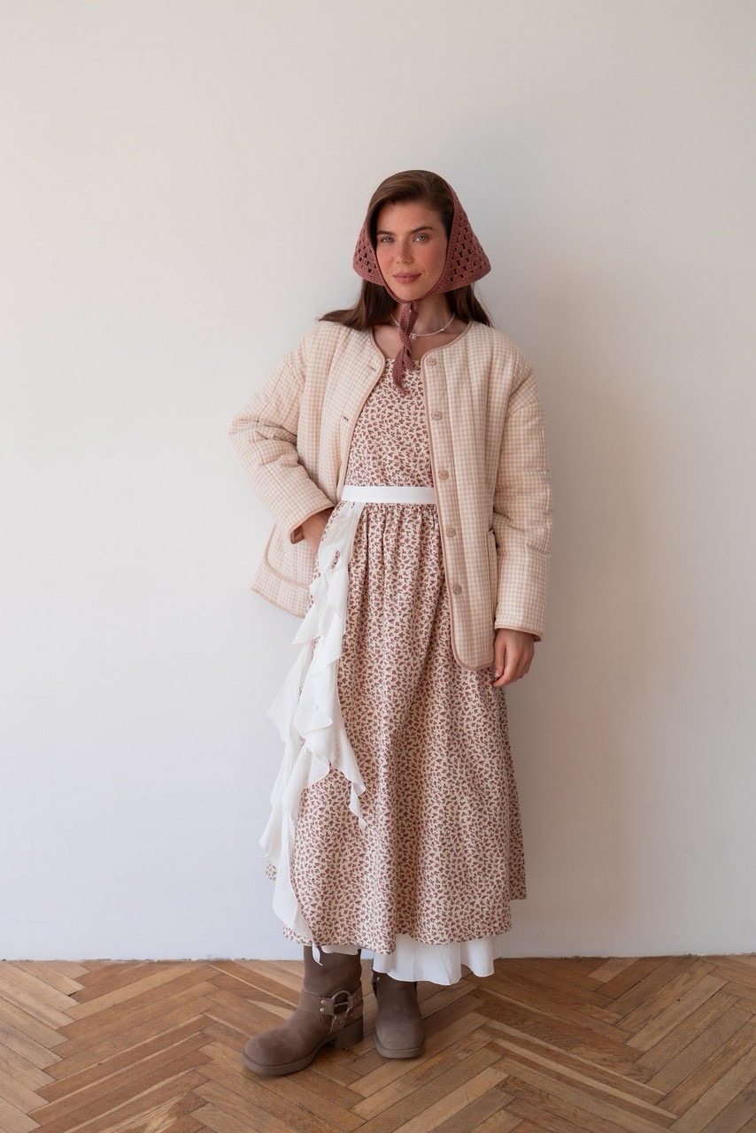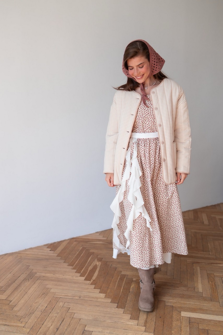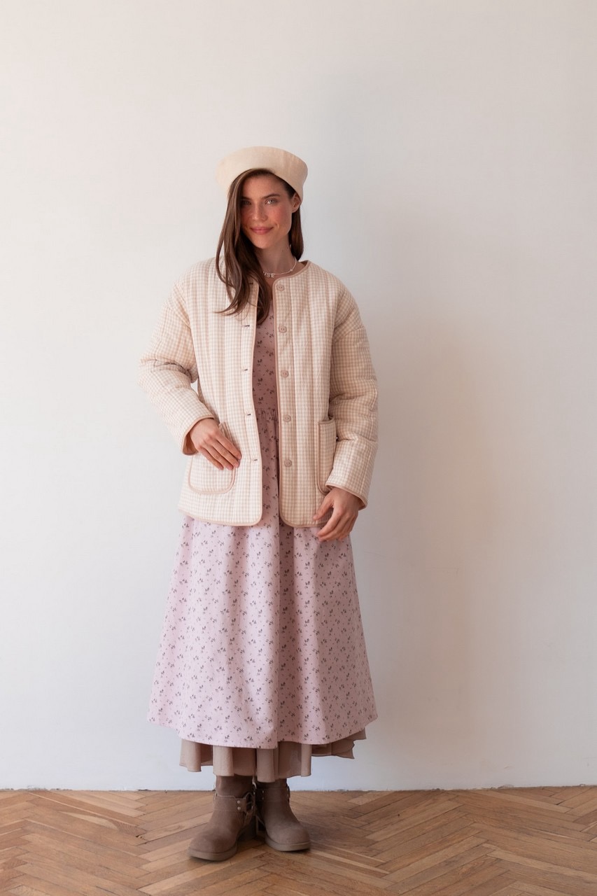 Стёганая телогрейка с накладными карманами - стильная, легкая и уютная. Выполнена из приятного к телу натурального хлопка. Воздушный утеплитель 150 гр. согреет вас осенью, весной и прохладным летом. А изящная декоративная шнуровка на спинке - наша любимая деталь в телогрейке, сделает образ особенным, подчеркнет вашу индивидуальность, романтичность и творческую натуру.