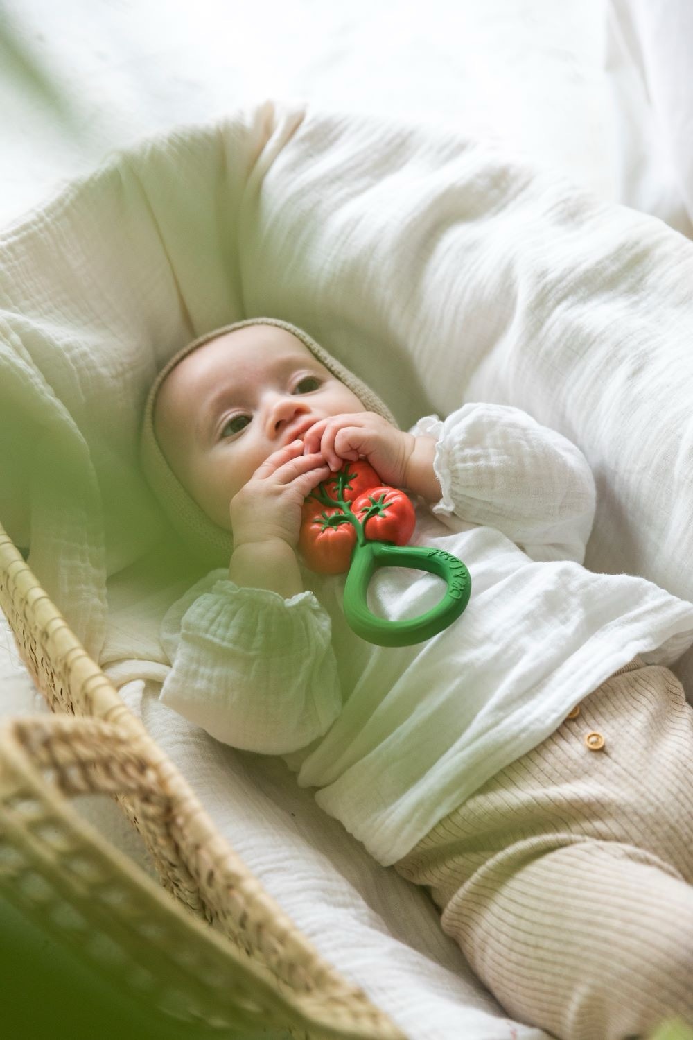 Коллекция погремушек-прорезывателей в виде фруктов и овощей от бренда Oli&Carol – это экологичные игрушки 2-в-1 из натурального каучука, окрашенные вручную пищевыми красителями и наполненные переработанными косточками вишни. Приятный звук погремушки успокаивает и не вызывает перевозбуждения у детей.