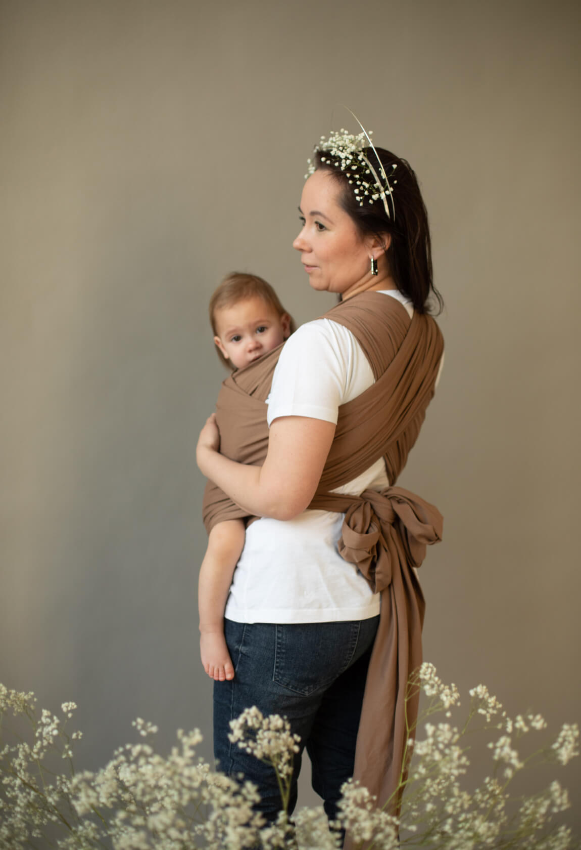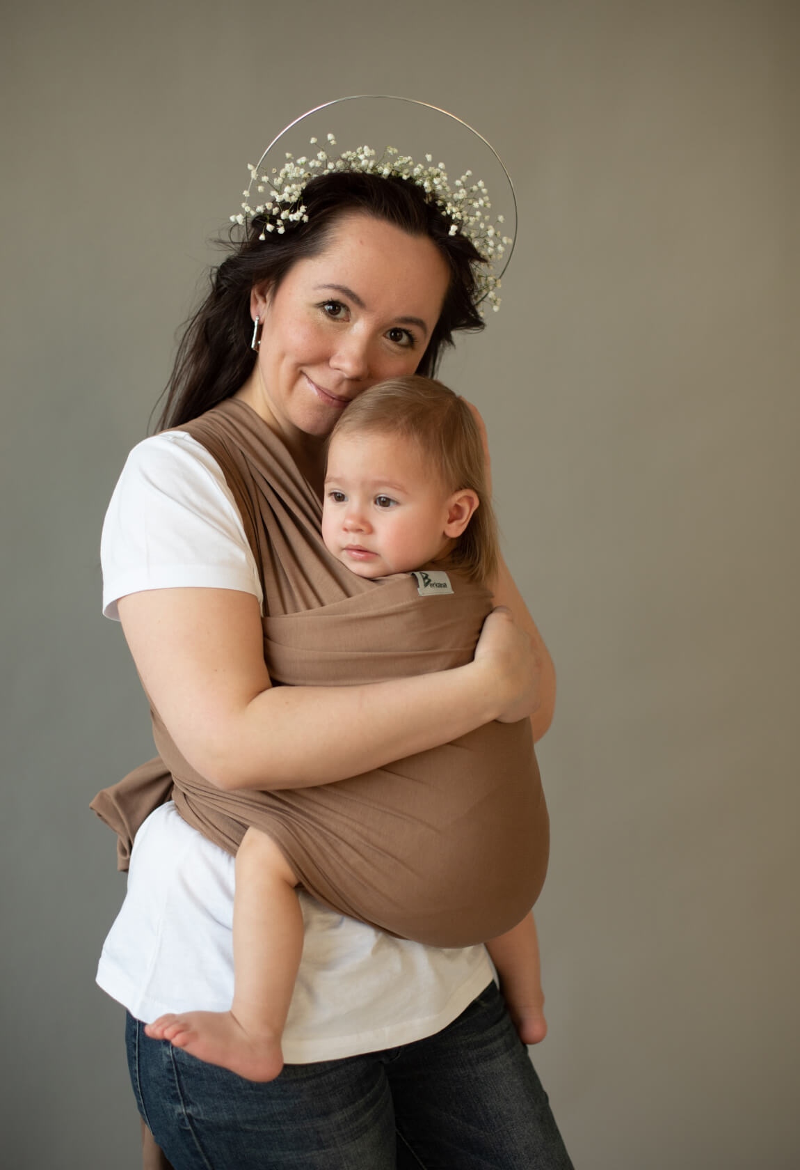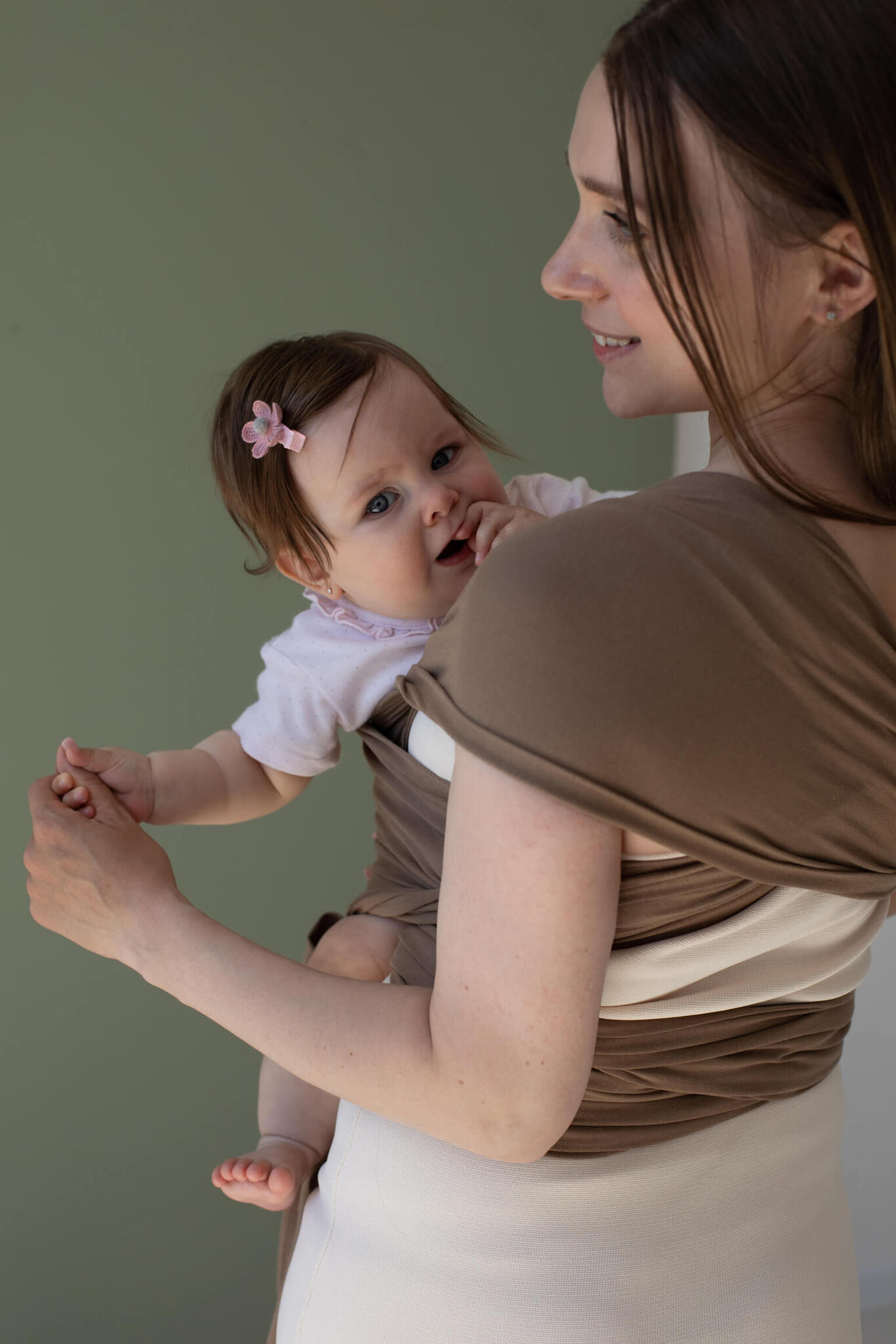 Мы можем намотать слинг один раз и уже в готовую намотку помещаем малыша. Далее можно вынимать/помещать малыша обратно в слинг несколько раз при этом сам слинг не перематывая.
