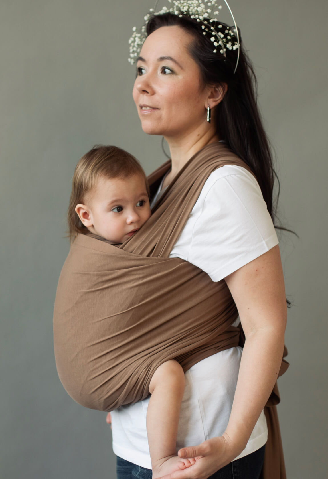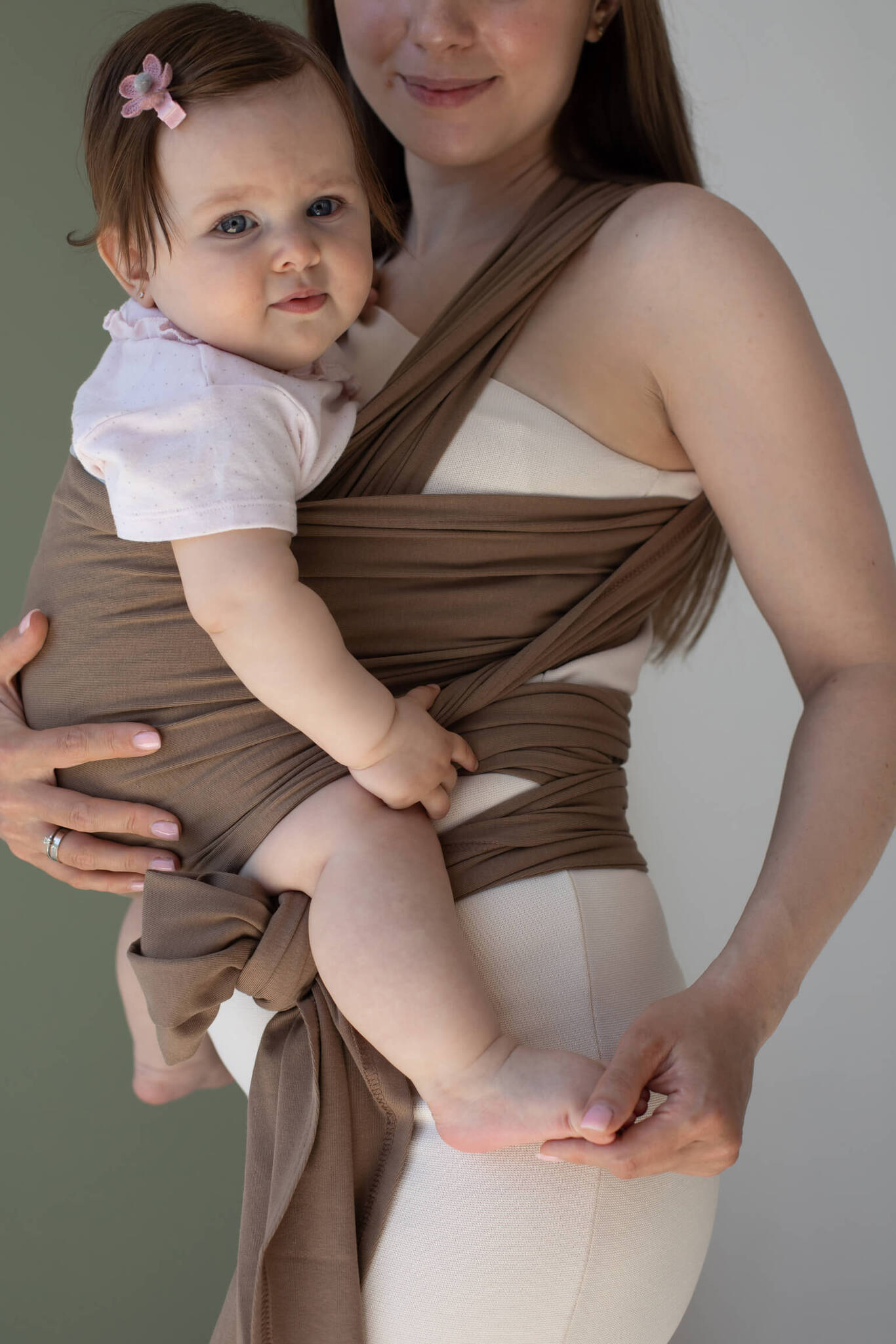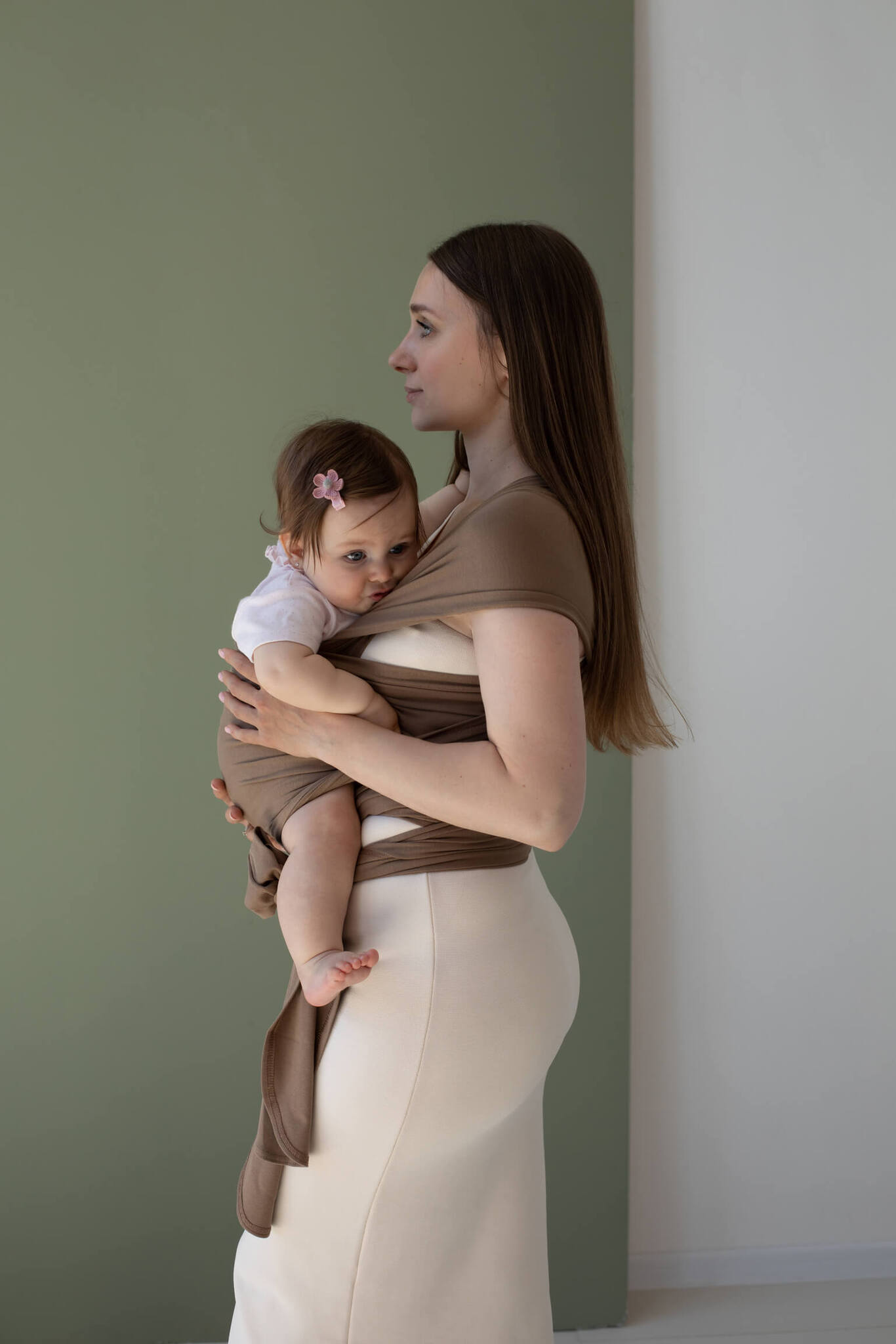 Нежный и ласковый трикотажный слинг-шарф из 65% бамбука, 30% органического хлопка и 5% лайкры.