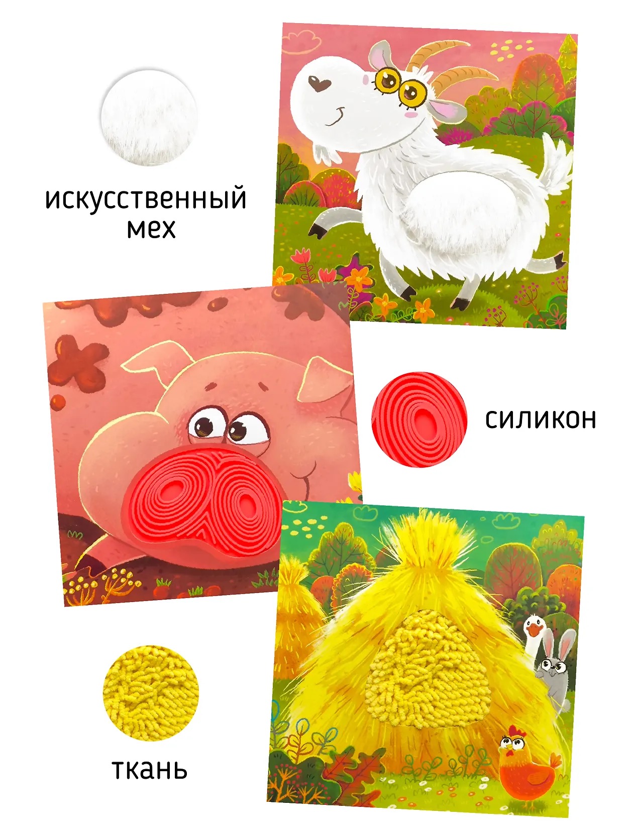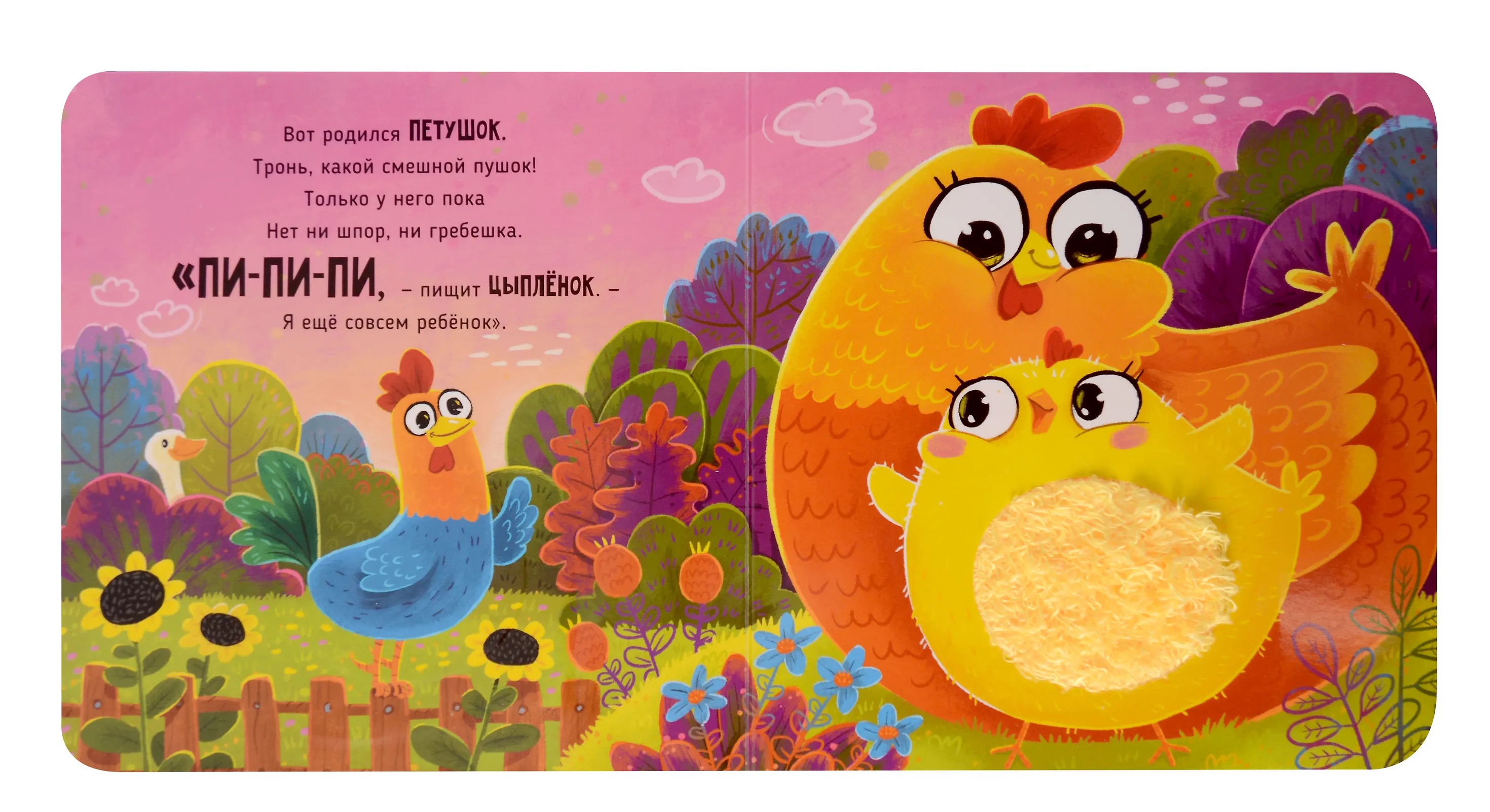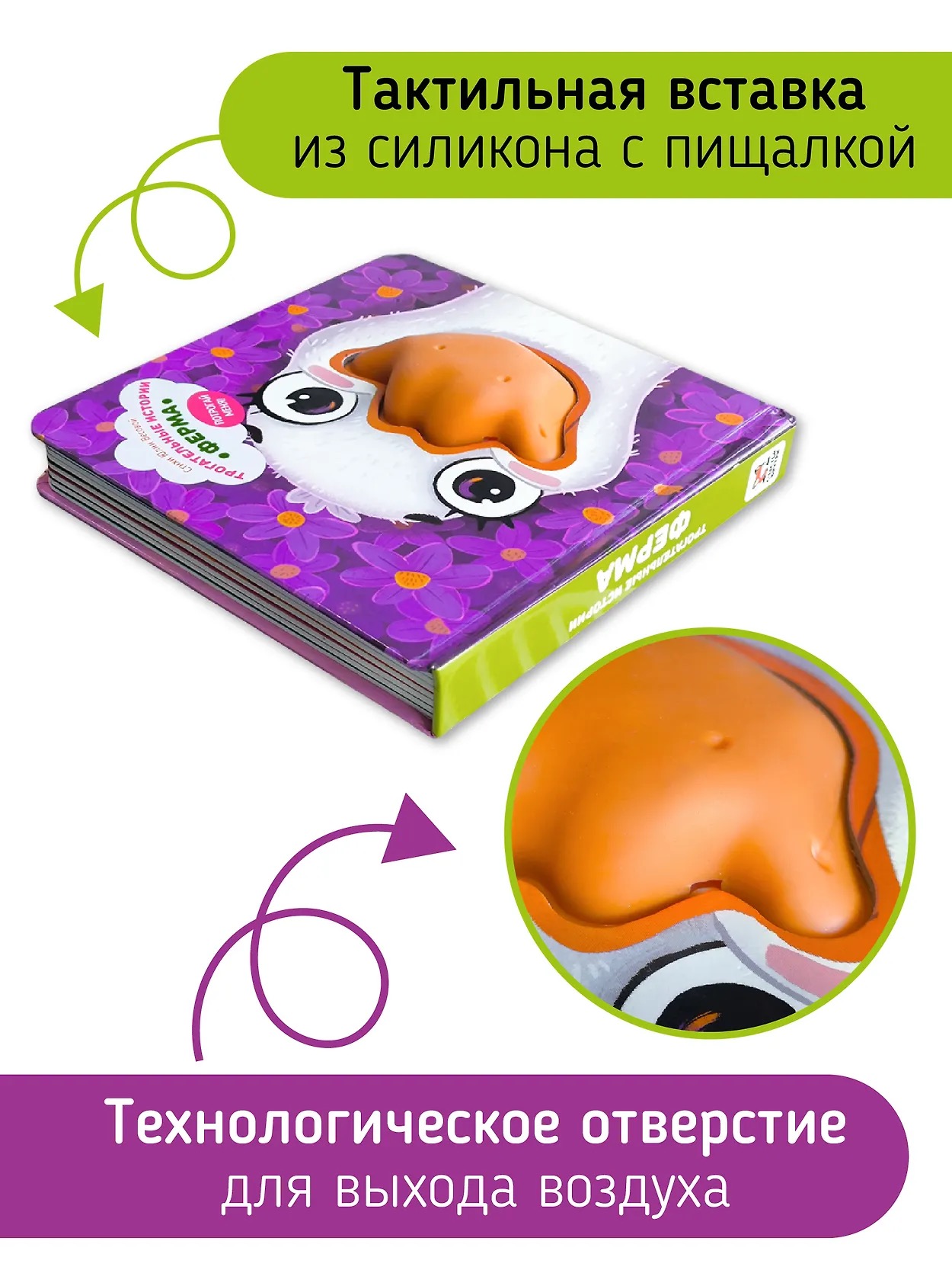 Трогательные истории в забавных стихах болтушках об обитателях фермы для самых маленьких от Юлии Весовой. Серия инновационных тактильных книг для детей и малышей от 0-1 лет, которые не только расскажут об интересных животных, но и позволят прикоснуться к персонажам. Какая грива у лошади? Какой язык у коровы? Какое оперение у цыпленка? Какие бока у козы? Потрогай и узнаешь! Она развивает воображение, память, моторику ребёнка по методике Монтессори, но и способствует запуску речи. Интерактивная развивашка для девочек и мальчиков с музыкальной пищалкой на обложке в виде клюва гуся заинтересует кроху на долго. Материал изделия действует как антистресс, поп ит. Практичные картонные страницы обеспечат долговечность и радость от чтения и игры!