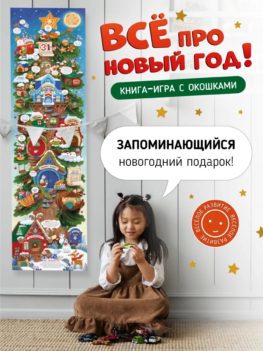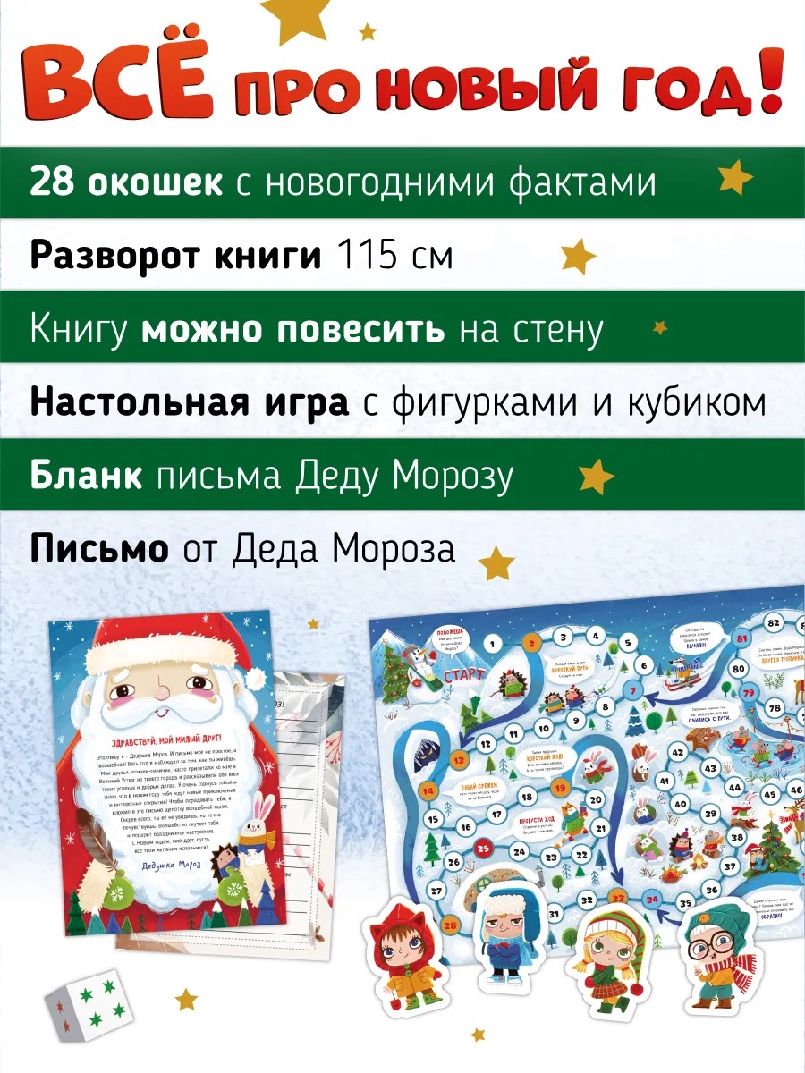 Книга содержит 28 окошек с интересными фактами о главном празднике для маленьких почемучек. Ребенок сможет узнать, почему Новый год празднуется 31 декабря, сколько лет Деду Морозу, где живет Снегурочка, а также о том, как празднуют в разных странах. Благодаря ярким красочным панорамным иллюстрациям дети легко запомнят материал, а задания "Найди и покажи" превратят чтение в увлекательную развивающую игру, наполненную новогодними символами и атмосферой праздника.