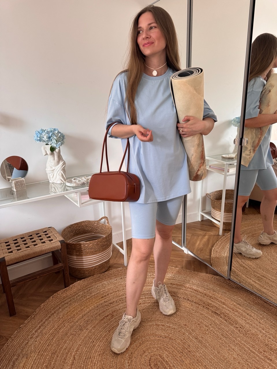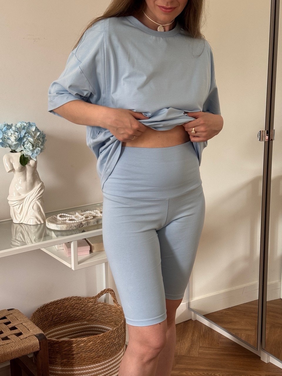 Параметры модели: в велосипедках цвета ПУДРОВЫЙ, ГОЛУБОЙ, МОККО: грудь 88 см, талия 65 см, бедра 92 см, рост 171 см, На модели велосипедки в размере 44.