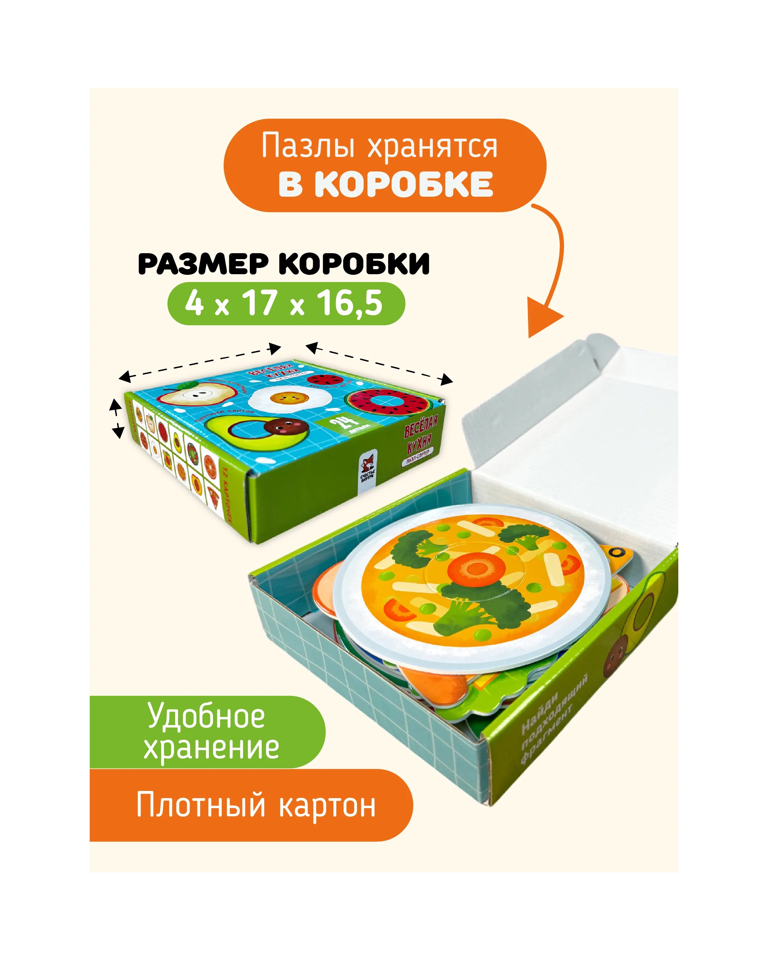 Пазл-сортер "Веселая кухня" познакомит вашего малыша с продуктами и вкусными блюдами в веселой игровой форме. Красочные пазлы привлекут внимание ребенка яркими рисунками. Игра развивает зрительное восприятие, мелкую моторику, воображение и логику.