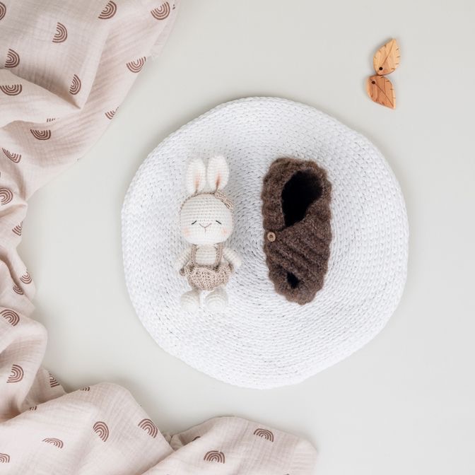 Нежная вязаная игрушка ручной работы — милый малыш в спокойной пастельной гамме. Аккуратная вязка, вышитые детали мордочки и мягкая, приятная на ощупь пряжа делают игрушку уютным другом для детской, красивым реквизитом для фотосессий и трогательным подарком на рождение, крестины или день рождения. Игрушка лёгкая, компактная и отлично смотрится как в наборе, так и отдельно.